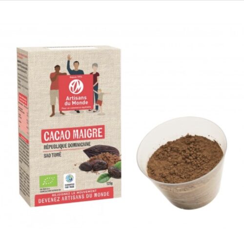 Tiré de fèves très aromatiques, le cacao maigre Artisans du Monde apporte une touche d’authenticité à vos recettes chocolatées. La saveur brute et intense de ce cacao en poudre fera voyager vos sens. Voilà un ingrédient d’exception, 100 % plaisir et 100 % bonne humeur ! En effet, le cacao réchauffe les cœurs puisqu’on lui prête des effets stimulants.
